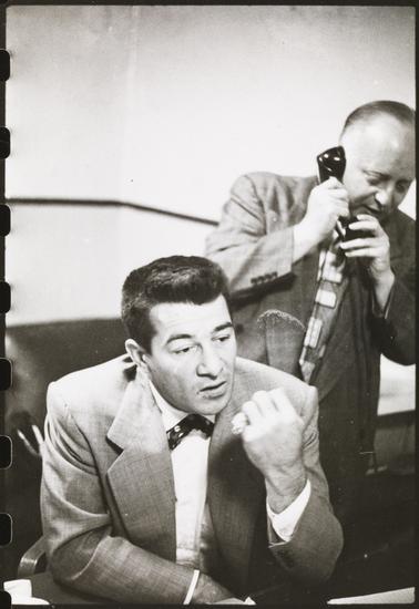 Rocky Graziano, He's a Good Boy Now [Rocky Graziano talking on a telephone in an office.]