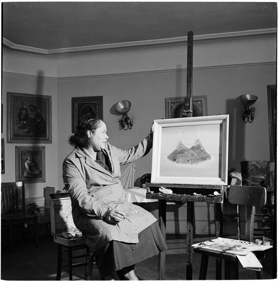 Art by Celebrities Sponsored by the Urban League [Juanita Hall with her painting.]