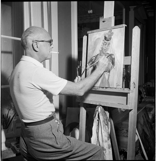 Art by Celebrities Sponsored by the Urban League [Man painting.]