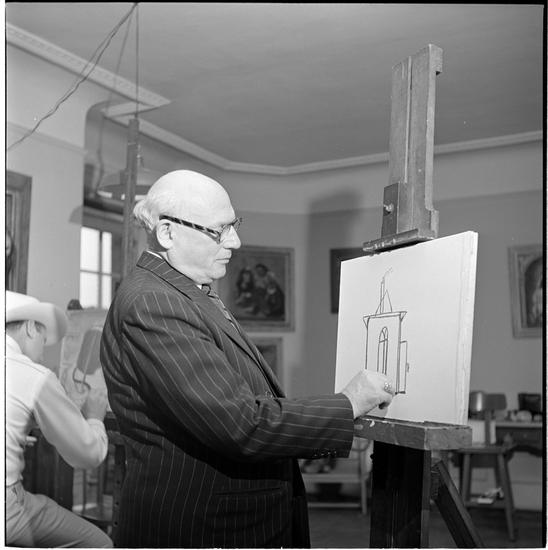 Art by Celebrities Sponsored by the Urban League [Man painting.]