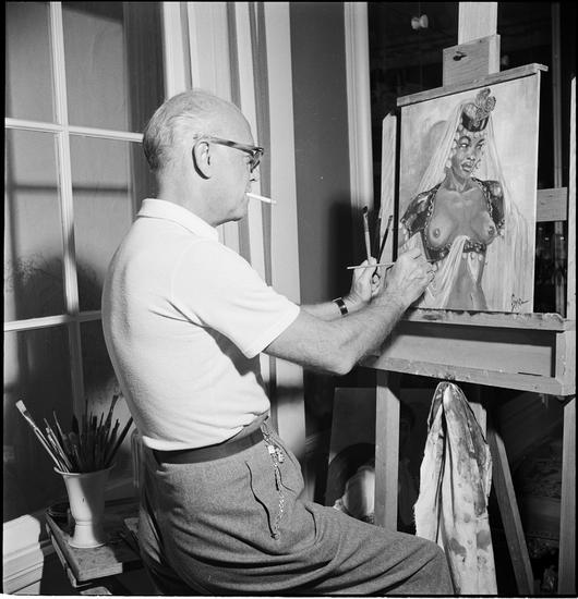 Art by Celebrities Sponsored by the Urban League [Man painting.]