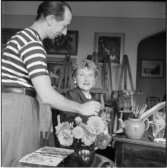 Art by Celebrities Sponsored by the Urban League [Helene Paul and a man in an artists' studio.]
