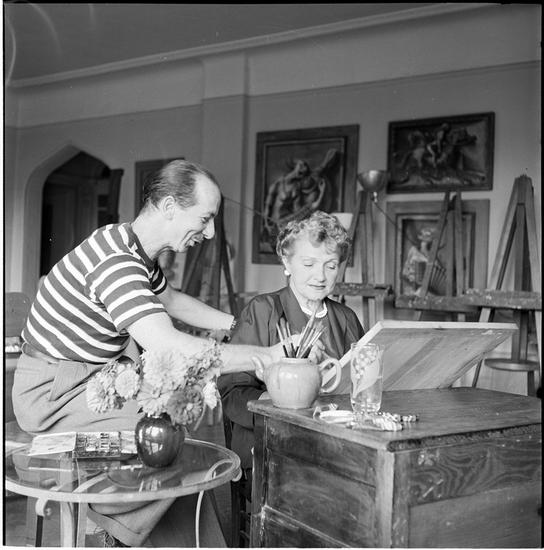Art by Celebrities Sponsored by the Urban League [Helene Paul and a man in an artists' studio.]
