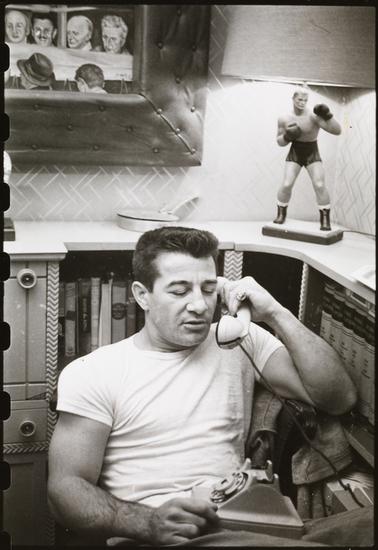 Rocky Graziano, He's a Good Boy Now [Rocky Graziano talking on a telephone in an office.]