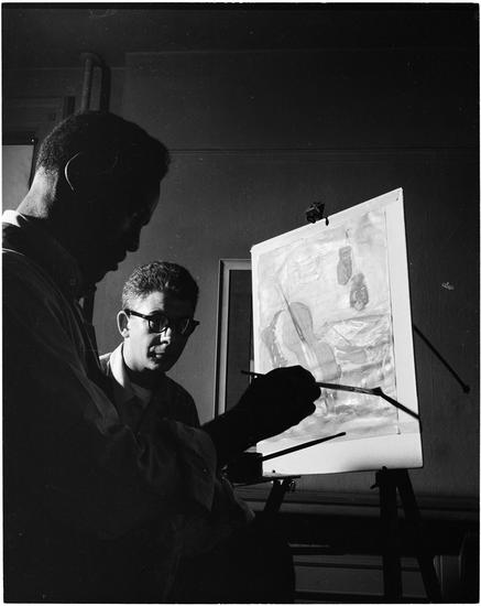 Art by Celebrities Sponsored by the Urban League [Man painting while another man watches.]