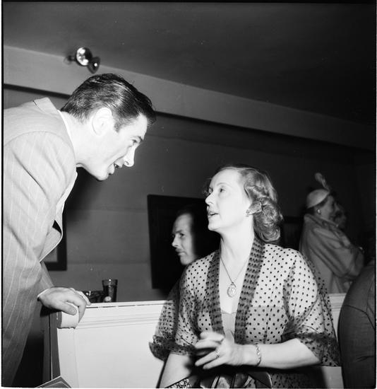 Celebrity Art Show [Bette Davis talking to a woman.]