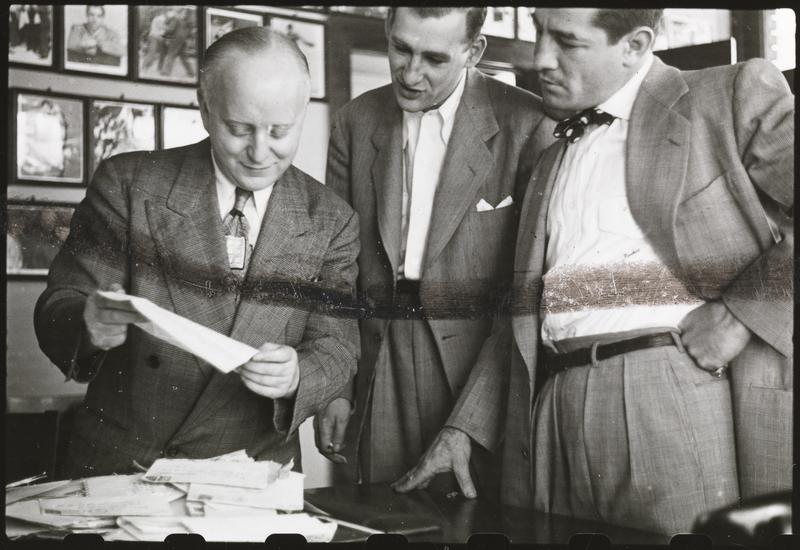 Rocky Graziano, He's a Good Boy Now [Rocky Graziano and men reading mail in an office.]
