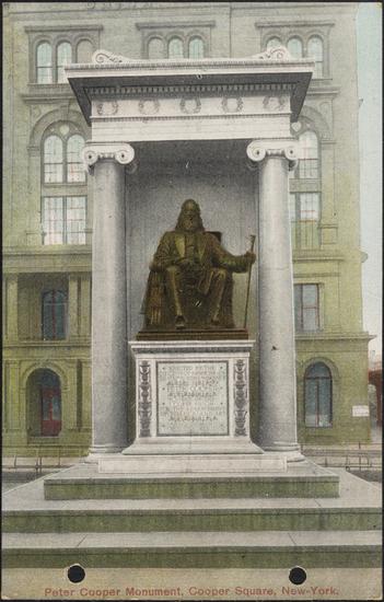 [Peter Cooper monument and Cooper Union Foundation Building.]