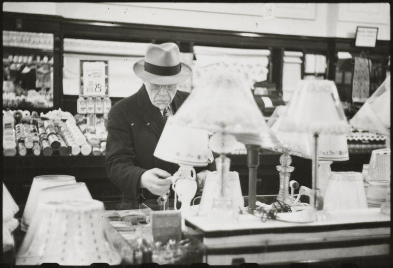 The 5 and 10 [Man with a dog shopping at Woolworth's.]