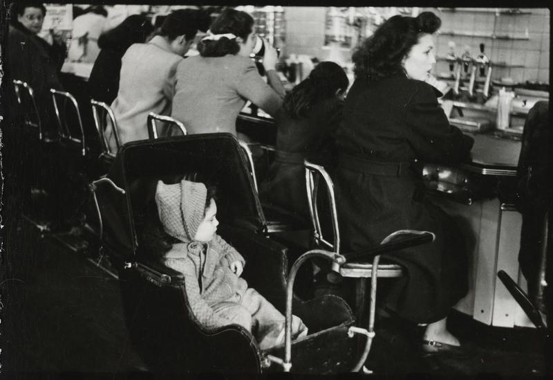 The 5 and 10 [Women shopping and child in a stroller at the lunch counter in Woolworth's.]