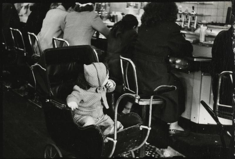 The 5 and 10 [Child in a stroller at the lunch counter in Woolworth's.]