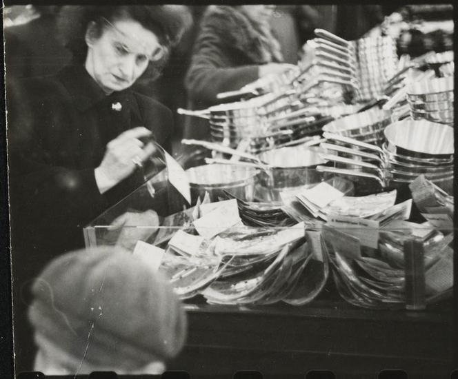 The 5 and 10 [Woman looking at a display of pots in Woolworth's.]