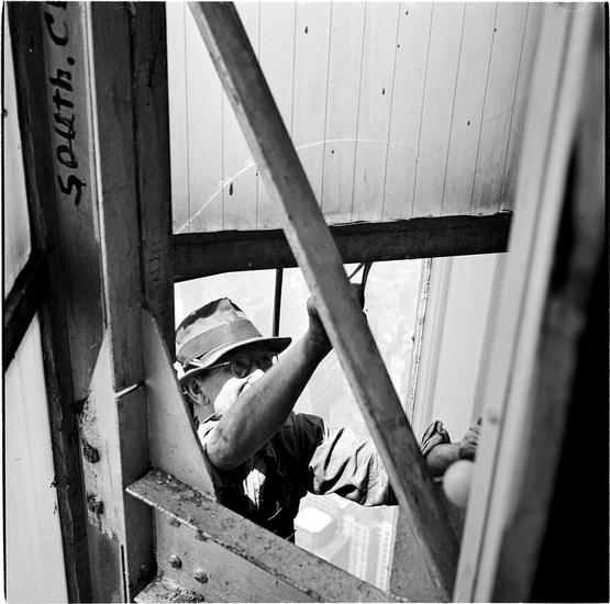Empire State Building [Man repairing glass panes on the tower.]