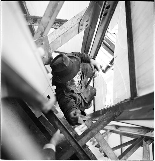 Empire State Building [Man repairing glass panes on the tower.]