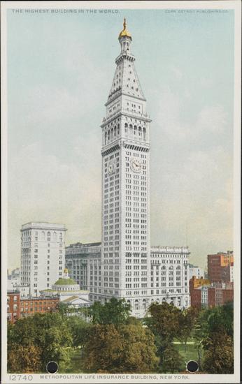 Metropolitan Life Insurance Building, New York. Highest Building in the World, 700 Feet.