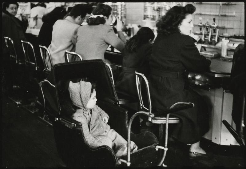 The 5 and 10 [Women shopping and child in a stroller at the lunch counter in Woolworth's.]