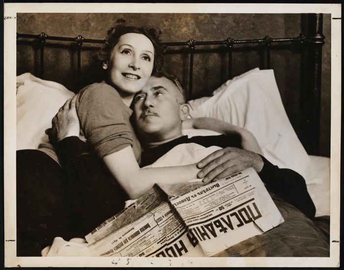[John Halliday as Prince Mikail Alexandrovitch and Marta Abba as Grand Duchess Tatiana Petrovna in "Tovarich".]