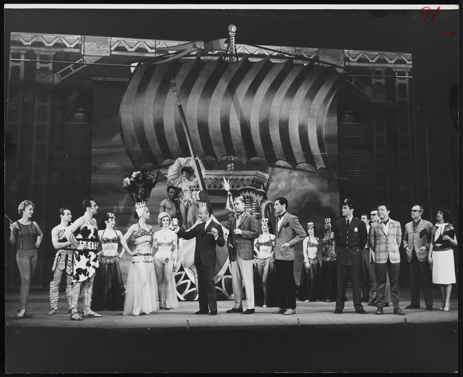 [Paula Stewart as Laurette Harrington, Steve Lawrence as Sammy Glick and Bernice Massi as Kit Sargent in "What Makes Sammy Run?".]
