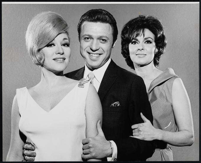 [Sally Ann Howes as Kit Sargent and Steve Lawrence as Sammy Glick in "What Makes Sammy Run?".]