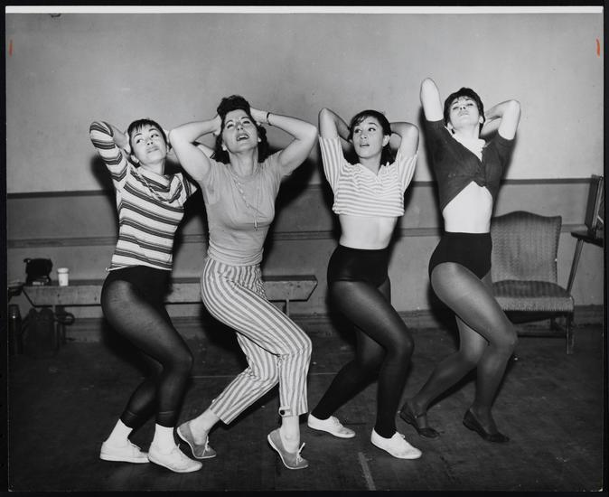 [Marion Fels, Aura Vainio and Walter Chiari during rehearsals for "The Gay Life".]