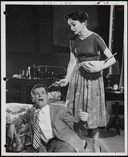 [Tom Ewell as Augie Poole and Nancy Olson as Isolde Poole in "The Tunnel of Love".]