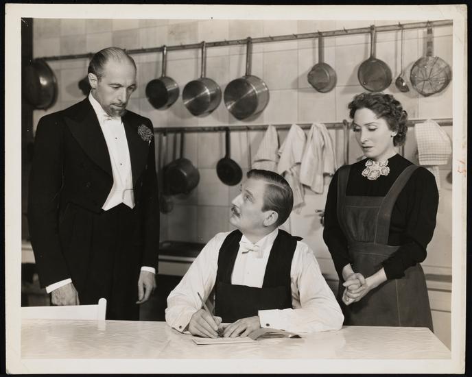 [John Halliday as Prince Mikail Alexandrovitch and Marta Abba as Grand Duchess Tatiana Petrovna in "Tovarich".]