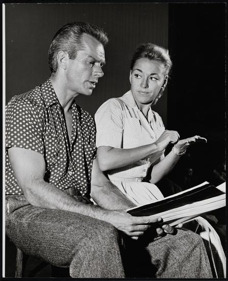 [Carolyn Leigh and Cy Coleman at rehearsal for "Wildcat".]