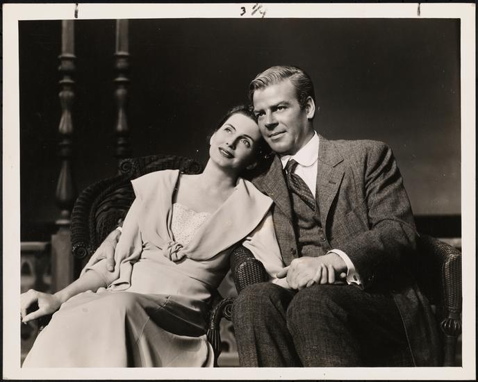 [John Battles as Joseph Taylor, Jr. and Gloria Wills as Beulah in the "So Far" number in "Allegro".]