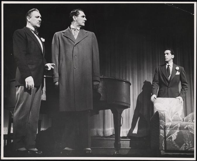 [John Battles as Joseph Taylor, Jr. and John Conte as Charlie Townsend in "Allegro".]
