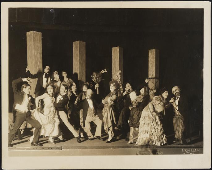 [Hershel Gendel and other performers in "Aristocrats", adapted from Sholem Aleichem's "Mentshn".]