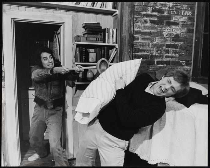 [Joan Welles as Kate and Peter Simon as Jimmy in "P.S. Your Cat Is Dead!".]