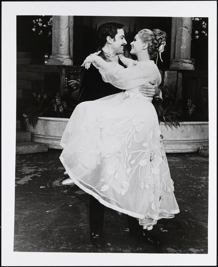 [David Holliday as Donald Marshall and Jane Powell as Irene O'Dare in the national tour of "Irene".]