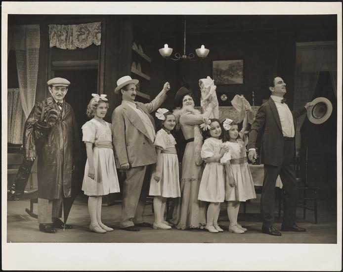 [Leon Fuchs, Celia Alder, Jacob Ben-Ami and Joseph Sheingold in "Life Marches On".]