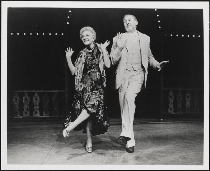 [Mary Martin as Lidya Vasilyevna and Anthony Quayle as Rodion Nikolayevich in "Do You Turn Somersaults?".]