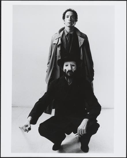 [Albert Greenberg and Corey Fischer as clowns playing Gebirtig's "Avreml der marvikher" in "The Last Yiddish Poet".]