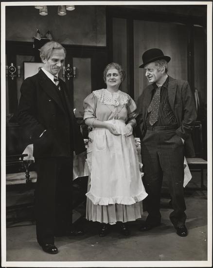 [Celia Adler, Leo Fuchs and Jacob Ben-Ami in "Life Marches On".]