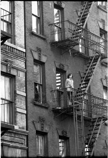 Changing New York [Young woman on a fire escape and streetscapes of 121st Street.]