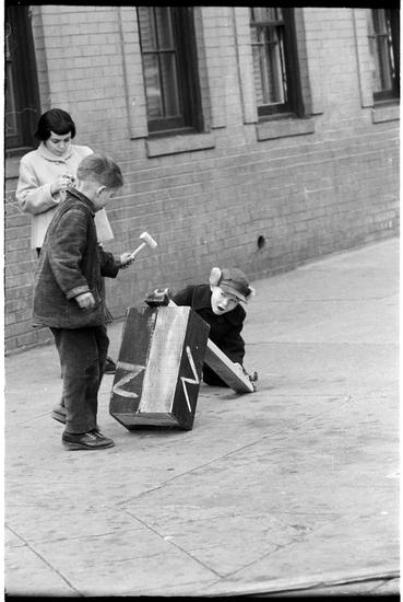 Changing New York [Children playing on a sidewalk and an older man standing by a wall.]