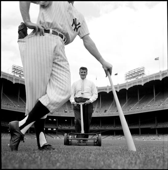 Yankee Stadium [Superintendent Jim Thompson mowing grass on the baseball field.]