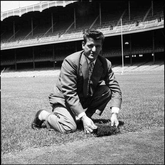 Yankee Stadium [Superintendent Jim Thompson overseeing maintenance of the baseball field.]