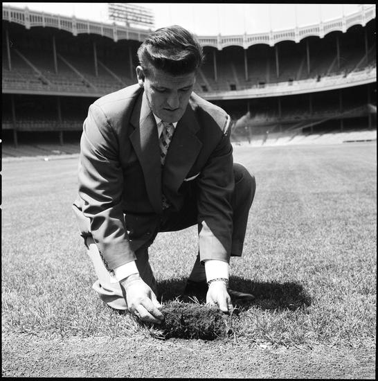 Yankee Stadium [Superintendent Jim Thompson maintaining the baseball field.]