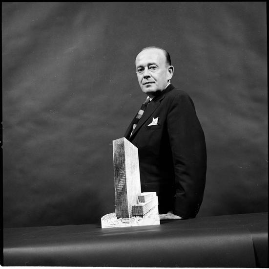 Park Avenue [Architect with model of building he designed.]
