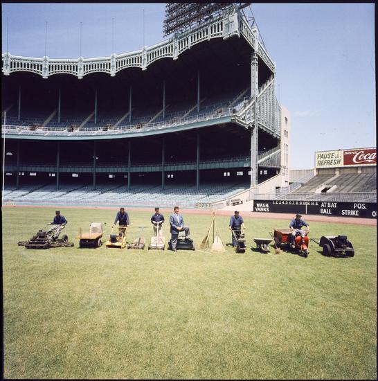 Yankee Stadium [Superintendent Jim Thompson overseeing maintenance of the baseball field.]