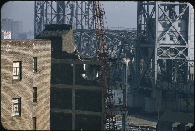 Changing New York [A building and a church near public housing being demolished.]
