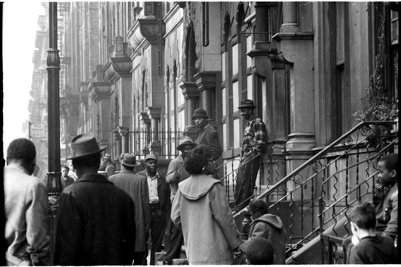 Changing New York [Men on the corner of an unidentified block in Harlem.]