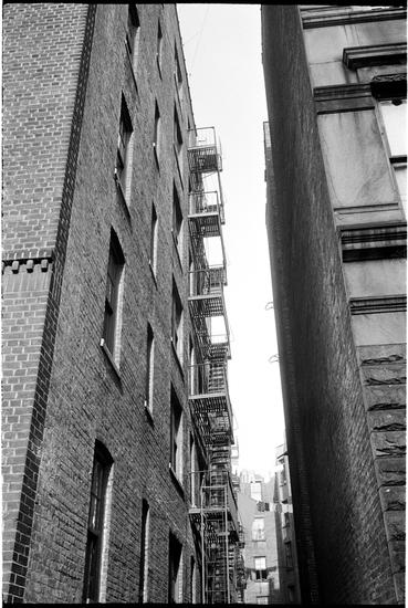 Changing New York [Young woman on a fire escape and streetscapes of 121st Street.]