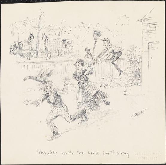 [Older couple pushed to the side of the road because of an impromptu horse race.]