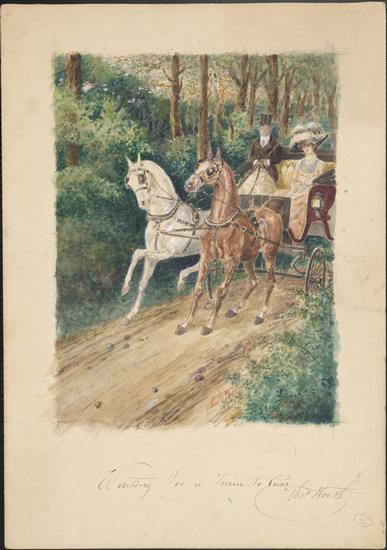 [Older couple pushed to the side of the road because of an impromptu horse race.]