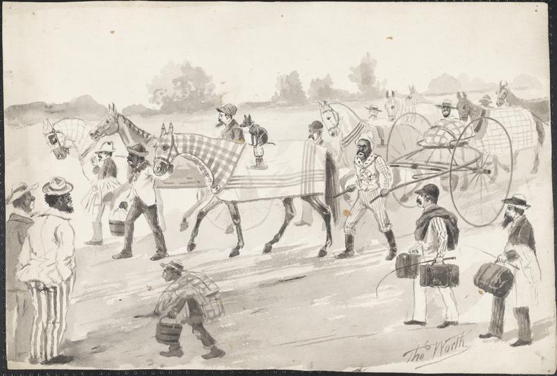 [Older couple pushed to the side of the road because of an impromptu horse race.]