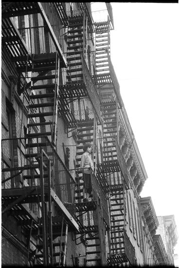 Changing New York [Young woman on a fire escape and streetscapes of 121st Street.]